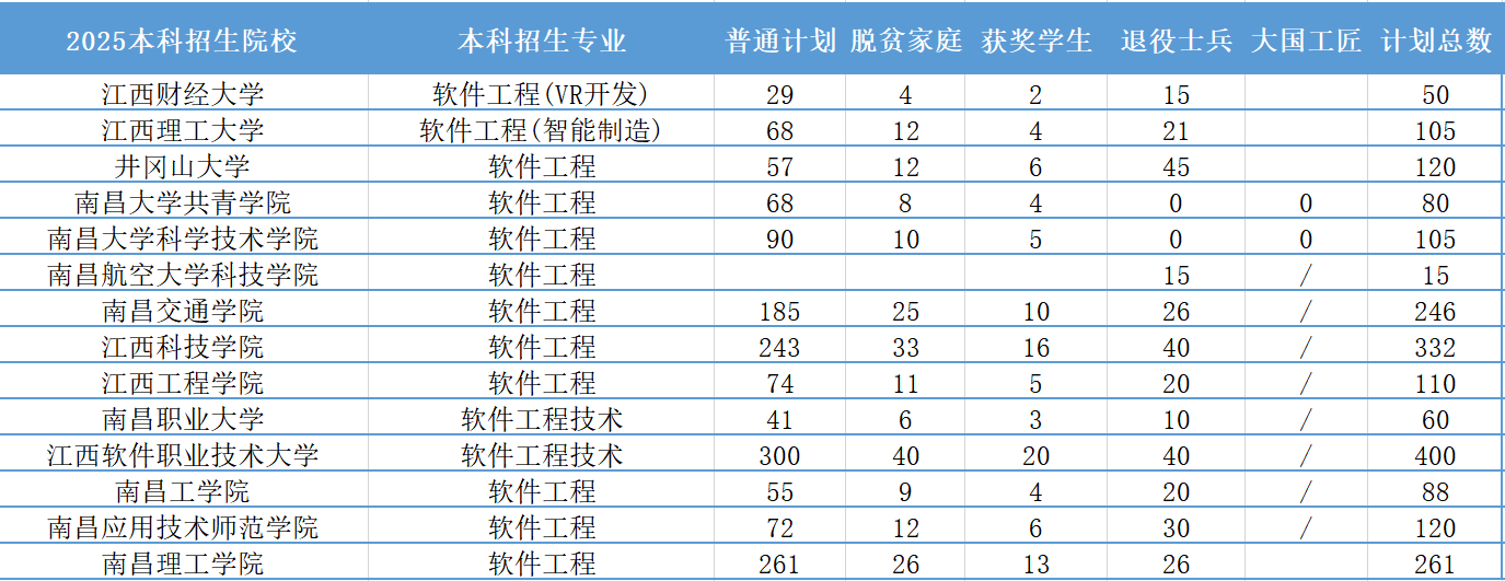 2025年江西专升本招生打算显示,
